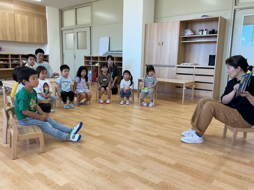 園長先生が読む絵本の中の世界に引き込まれるかのように、静かに絵本を見ていた子ども達。