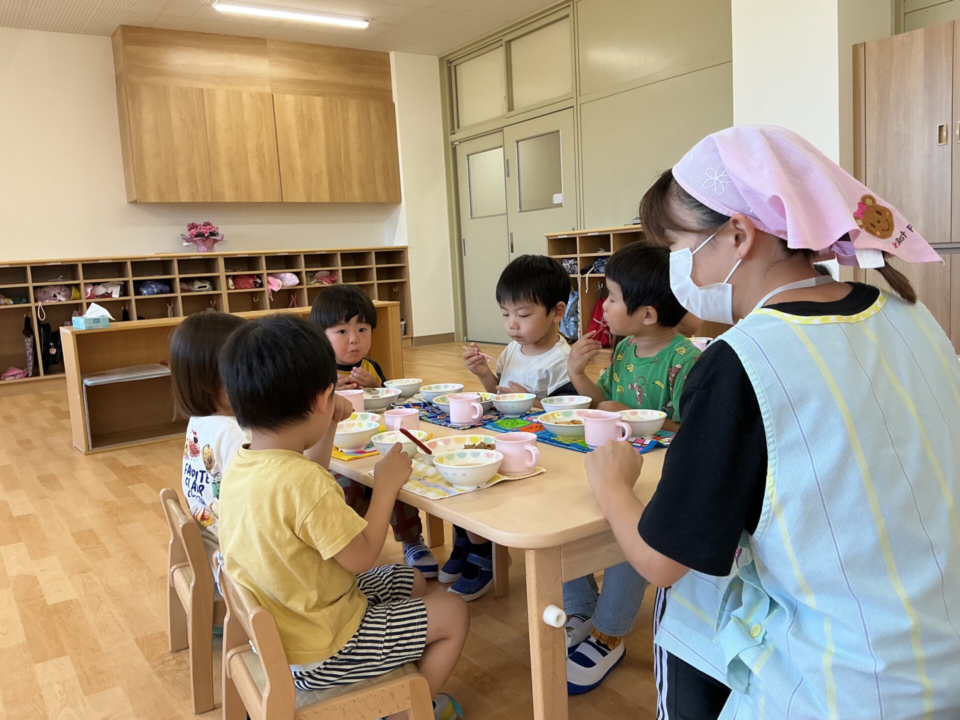 今日は、北里くじらこども園が開園してから、初めての給食日です。