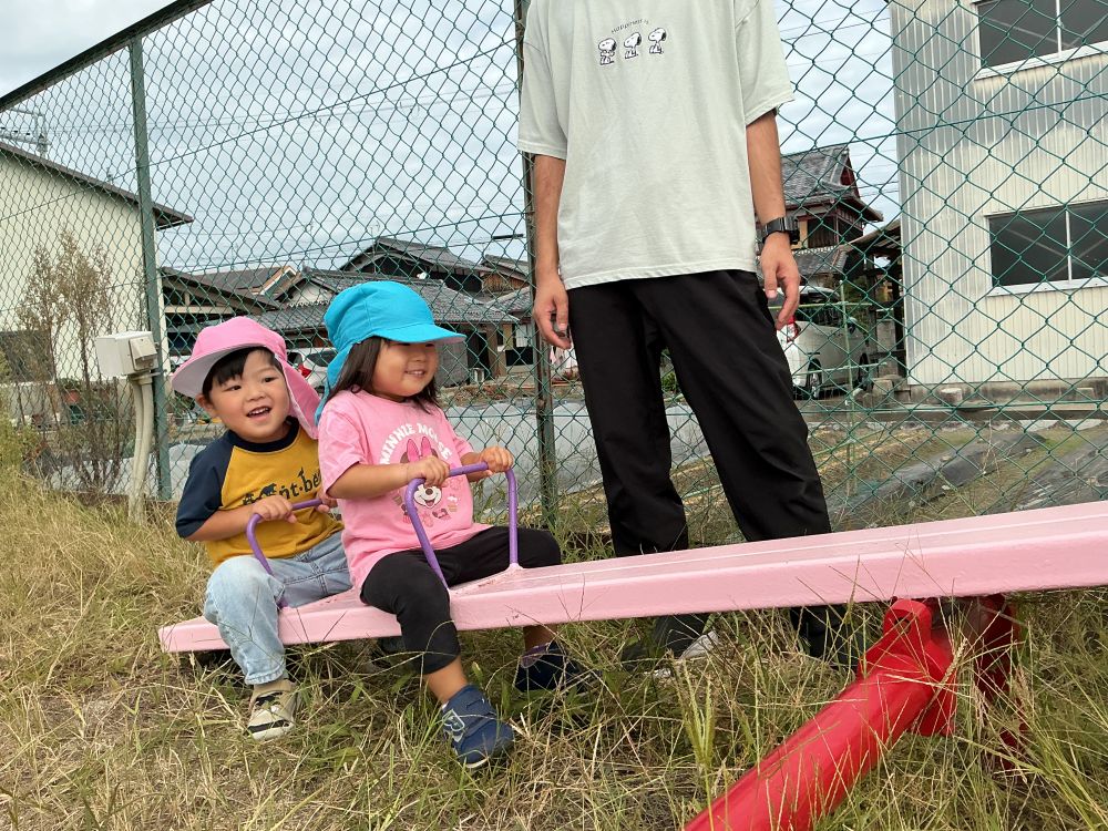 ブランコやシーソーなど、こども園とはまた違う遊具に、子ども達も大興奮。