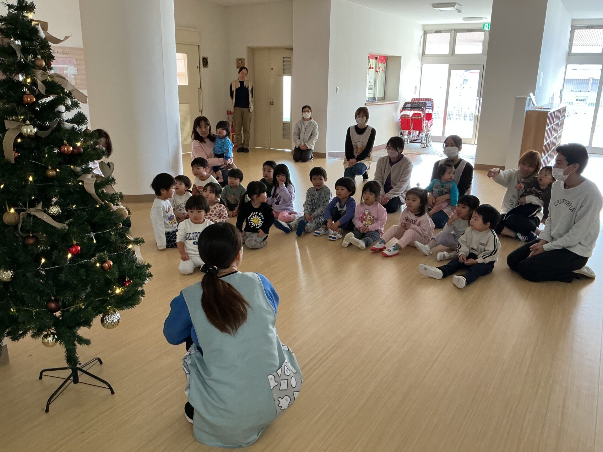 そして、全園児がツリーの前に集まり、こども園にもサンタさんが来てくれますように!