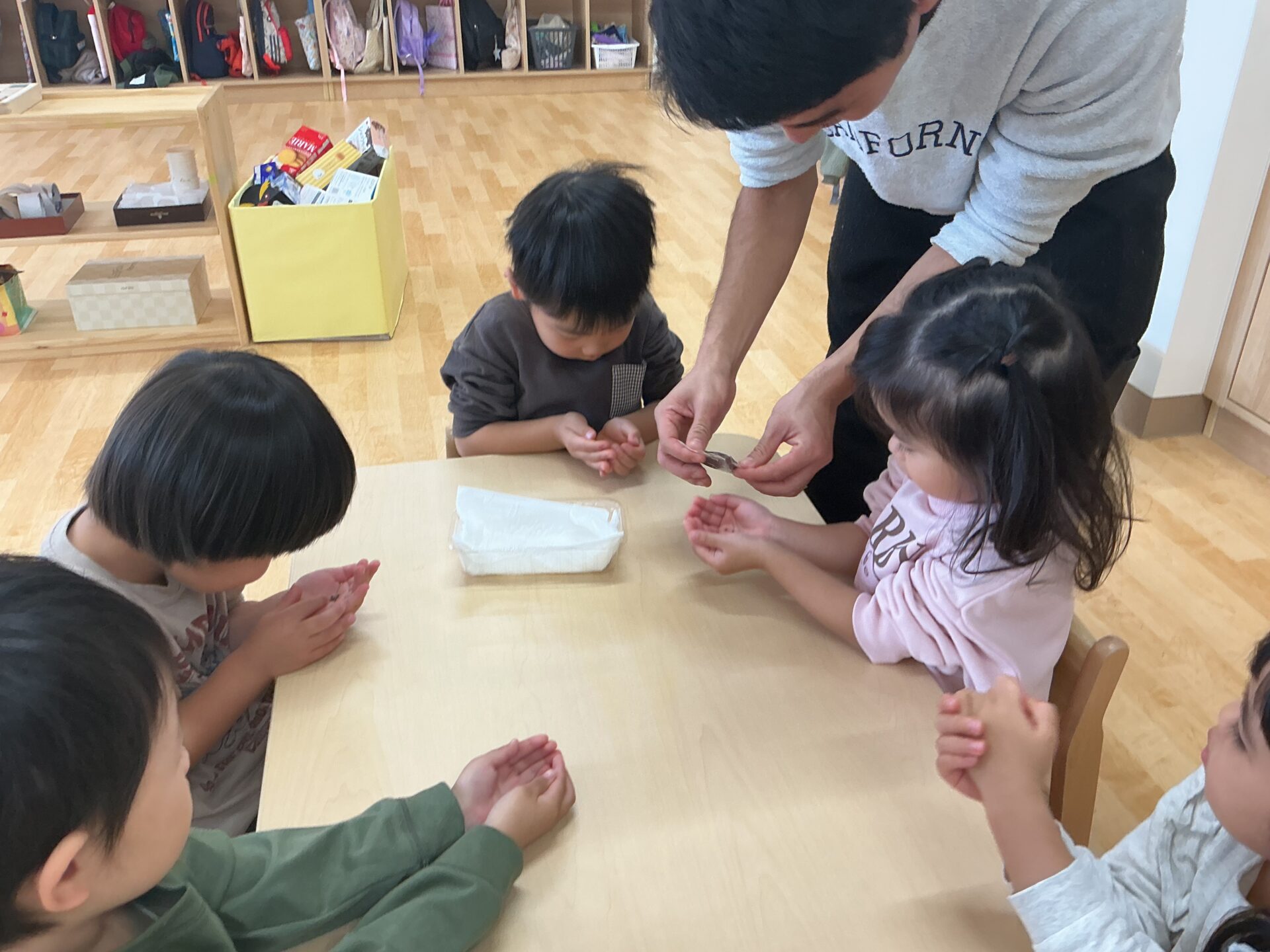 と発見して喜び、笑顔で保育者に知らせてくれる子ども達の姿がありました。