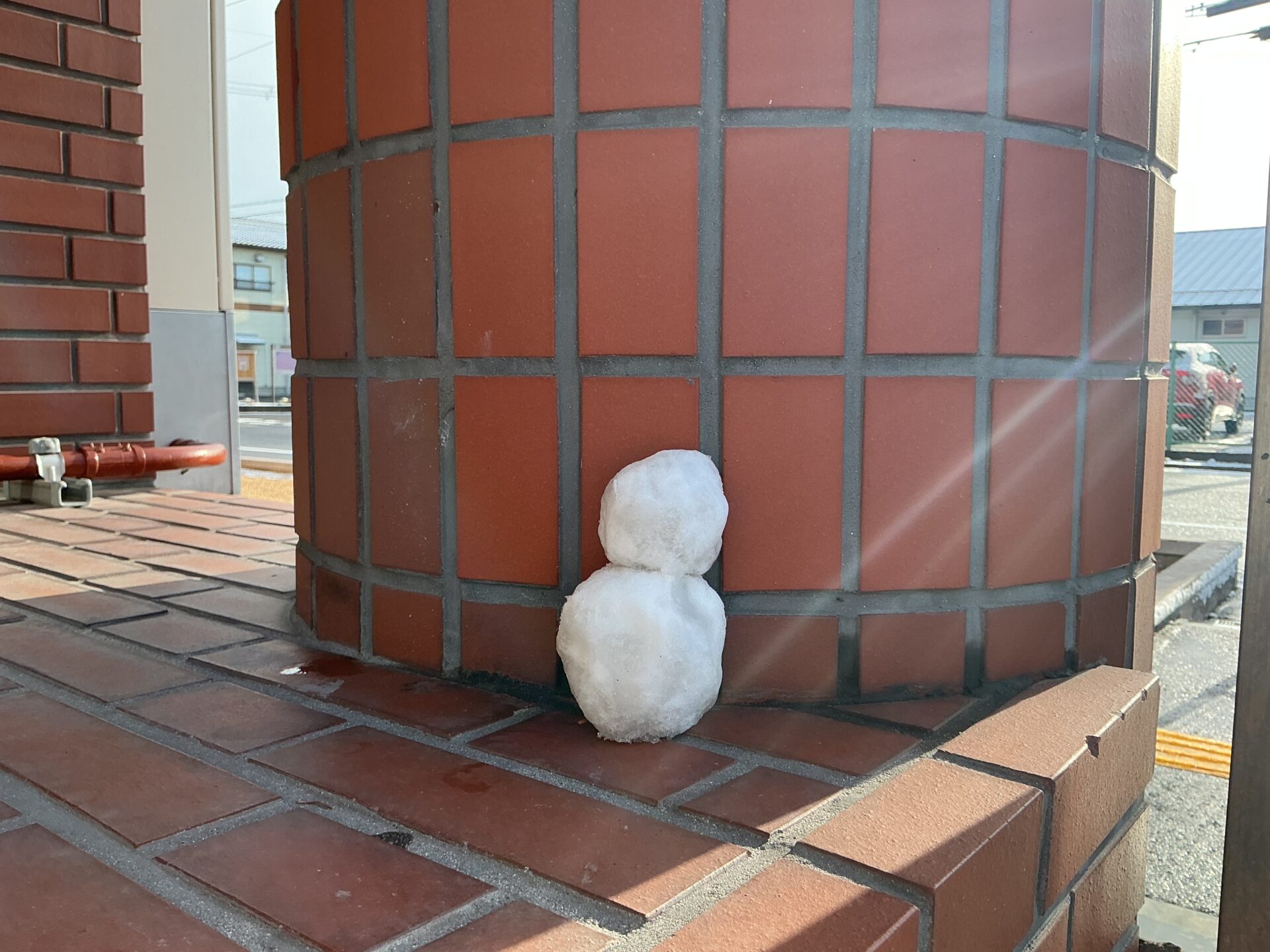 可愛い雪だるまがひっそりと佇んでいました。