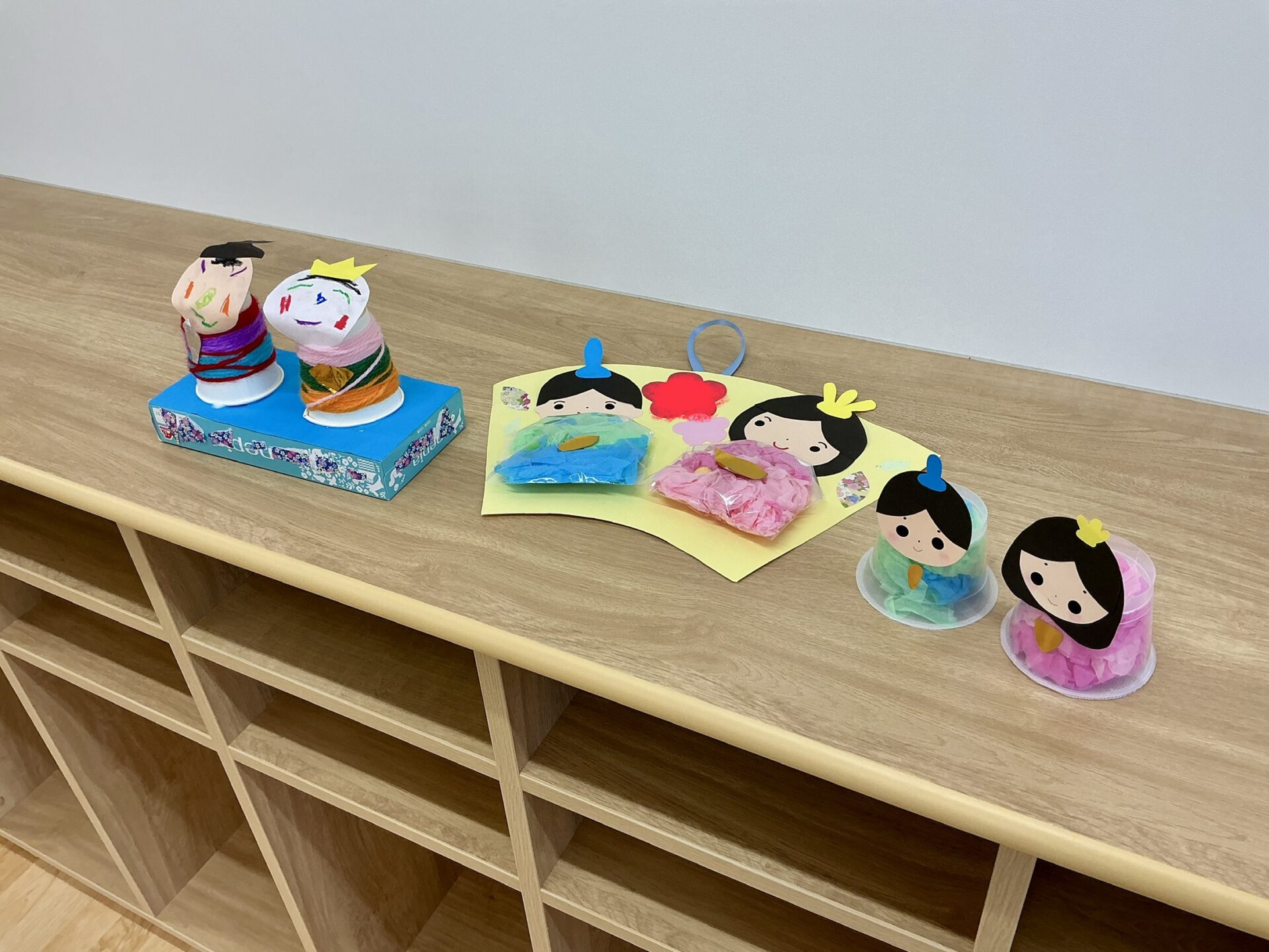 まずはひな祭りに向けて、各クラスが一生懸命作った制作をご紹介します。